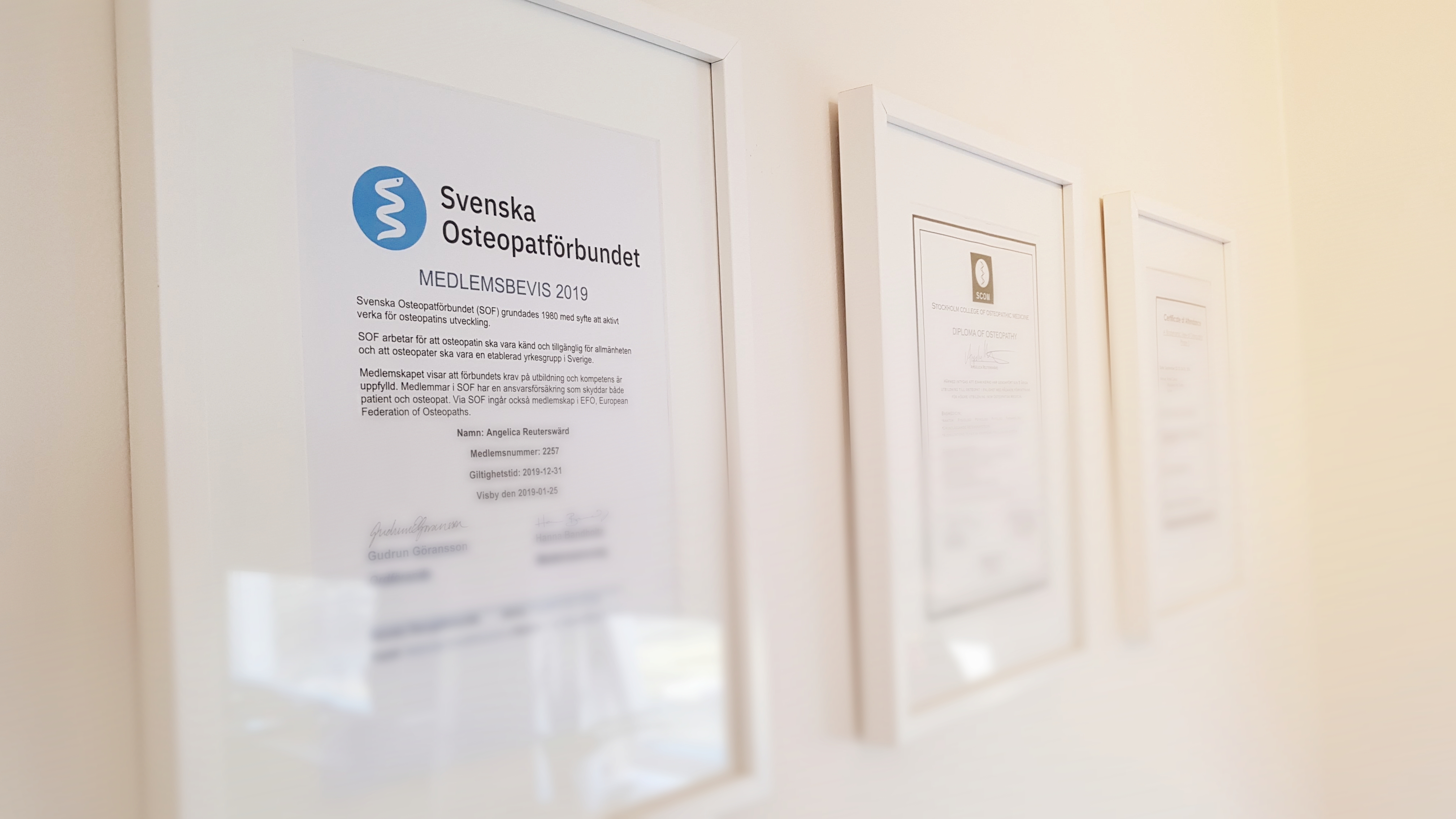 Jag är medlem i Svenska Osteopatförbundet (SOF) sedan 2011. Mitt medlemskap i SOF garanterar att jag som osteopat har genomgått en adekvat utbildning som uppfyller kraven enligt europeisk standard.